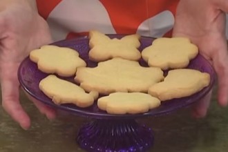 - Pinchar la masa varias veces con un tenedor, espolvorearla con la mitad del azúcar y cocerla en el horno