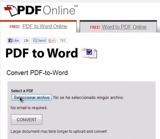 - Accede a cualquiera de las páginas que permiten transformar archivos pdf en word. Aquí te indicamos algunos ejemplos: https://www.pdftoword.com/es/ , http://www.pdfonline.com/pdf-to-word-converter/