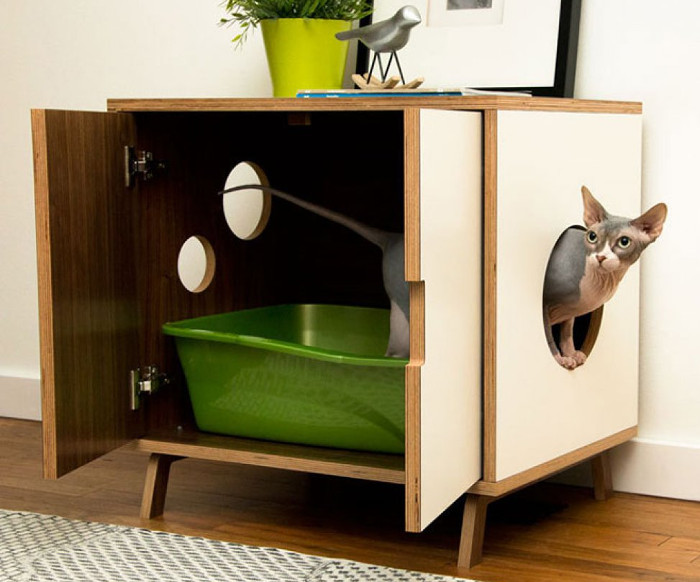 ¿Los areneros para gatos te parecen antiestéticos? Si vives en un piso y te gustaría que el arenero esté en un lugar más discreto, siempre puedes apostar por muebles para gatos estilo arenero como el que tienes a continuación. Tu gato podrá hacer sus necesidades cómodamente en un espacio de lo más íntimo.